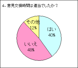 ・意見交換は不可能だと思う。質疑の時間をもう少し多くして欲しい。 |