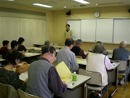 | 頭の体操の後は、メタボリック症候群予防 ということで、お腹まわりの体操を4つ みんなでやってみました。 いすにすわったまま ・骨盤の調節 ・わき腹 ・おへそまわり |