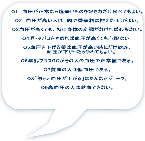 | Q9高血圧の人は献血できない。 |